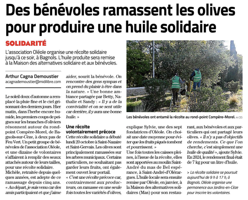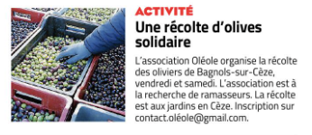 Récolte jeudi 23 à Saint Nazaire et Sabran